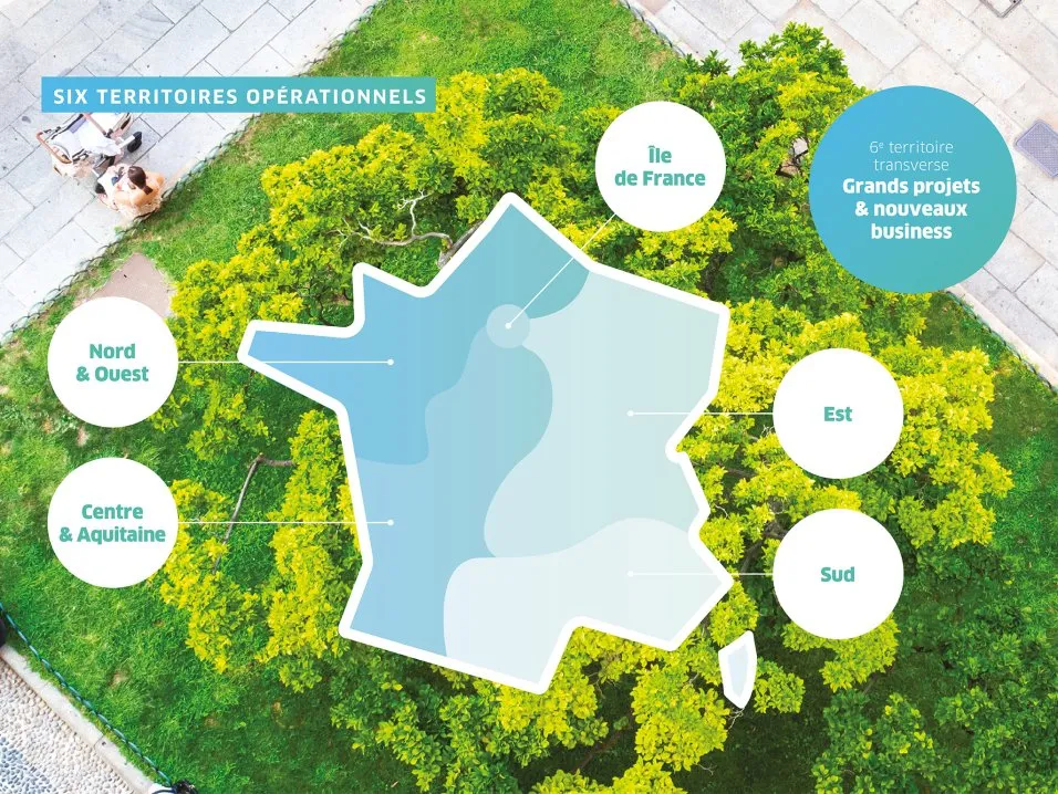 Cette BU couvre des segments larges (de l’immobilier tertiaires aux gares, en passant par les aéroports, collectivités et bâtiments de santé, entre autres) et démontre un savoir-faire unique. Cette BU conçoit, construit, exploite et assure la maintenance des bâtiments de demain en déployant les systèmes de pilotage et de maîtrise de la consommation. Sa vocation est double : être le spécialiste des métiers du tertiaire et de l’habitat, et être le généraliste leader des activités de proximité.