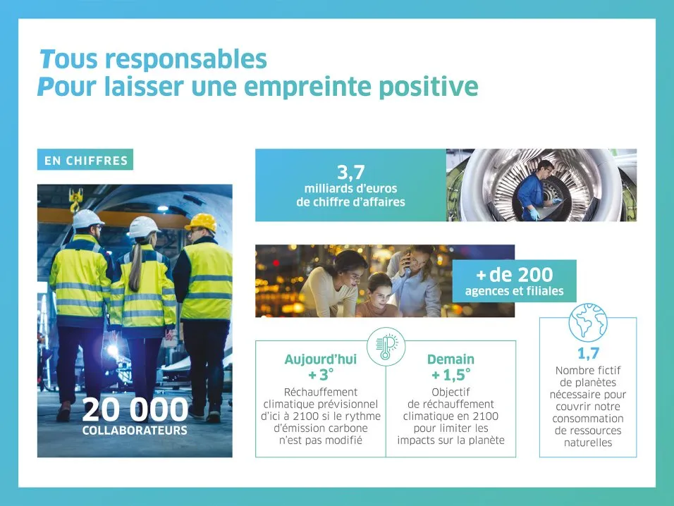 Conseil et création de cette brochure mémo. En premier lieu, travail de conception rédaction pour définir un gimmick propre à cette BU. C’est la mécanique du Tous... Pour... qui a été retenue, les deux premières lettres faisant écho au nom Tertiaire & Proximité. Création visuelle de l'ensemble de ce guide, avec conception de schémas et choix aiguisé de visuels axés sur la politique zéro carbone du Groupe. Pour réduire l’empreinte carbone, le choix de fabrication s'est porté sur un papier recyclé et un imprimeur français labellisé Imprim’Vert.