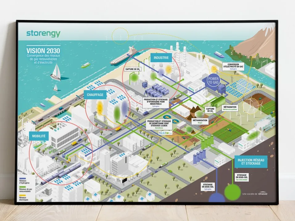 Dans le cadre d’une présentation d’Isabelle Kocher sur la vision 2030 du Groupe, l’entité Storengy a confié à Kromi la possibilité de les aider pour représenter de façon concise sa stratégie en géothermie et stockage de gaz.