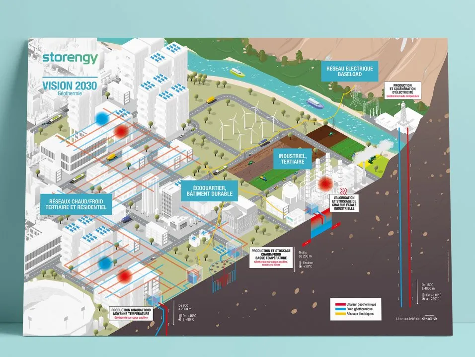 Comment représenter visuellement la stratégie de géothermie et stockage de gaz mise en place chez Storengy ?