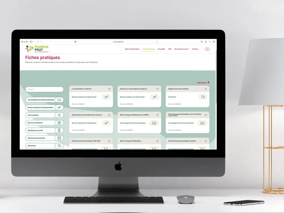 Testé avant mise en ligne par un panel de pharmaciens d’officine, nous avons pu ajuster quelques points fonctionnels avant le lancement officiel. Grâce à ces trois rubriques principales : aide à la facturation, fiches pratiques et FAQ, les pharmaciens d’officine de la région peuvent désormais trouver l’ensemble des réponses à leurs questions en quelques clics ! Après plusieurs mois d’utilisation, la plateforme est devenu un réflexe pour nombre d’entre eux. Une vraie révolution pour les aider dans la pratique quotidienne de leur métier. Le site est à découvrir ici : https://pharmaprat.fr